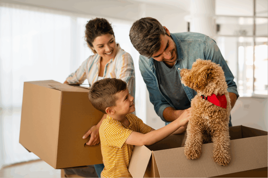 Moving day can be hectic and doors are often left open. To avoid escapes or injuries, secure your pet in a quiet, enclosed space or consider having them stay with a trusted friend, family member, or pet sitter for the day. It’s safer and less stressful for everyone.